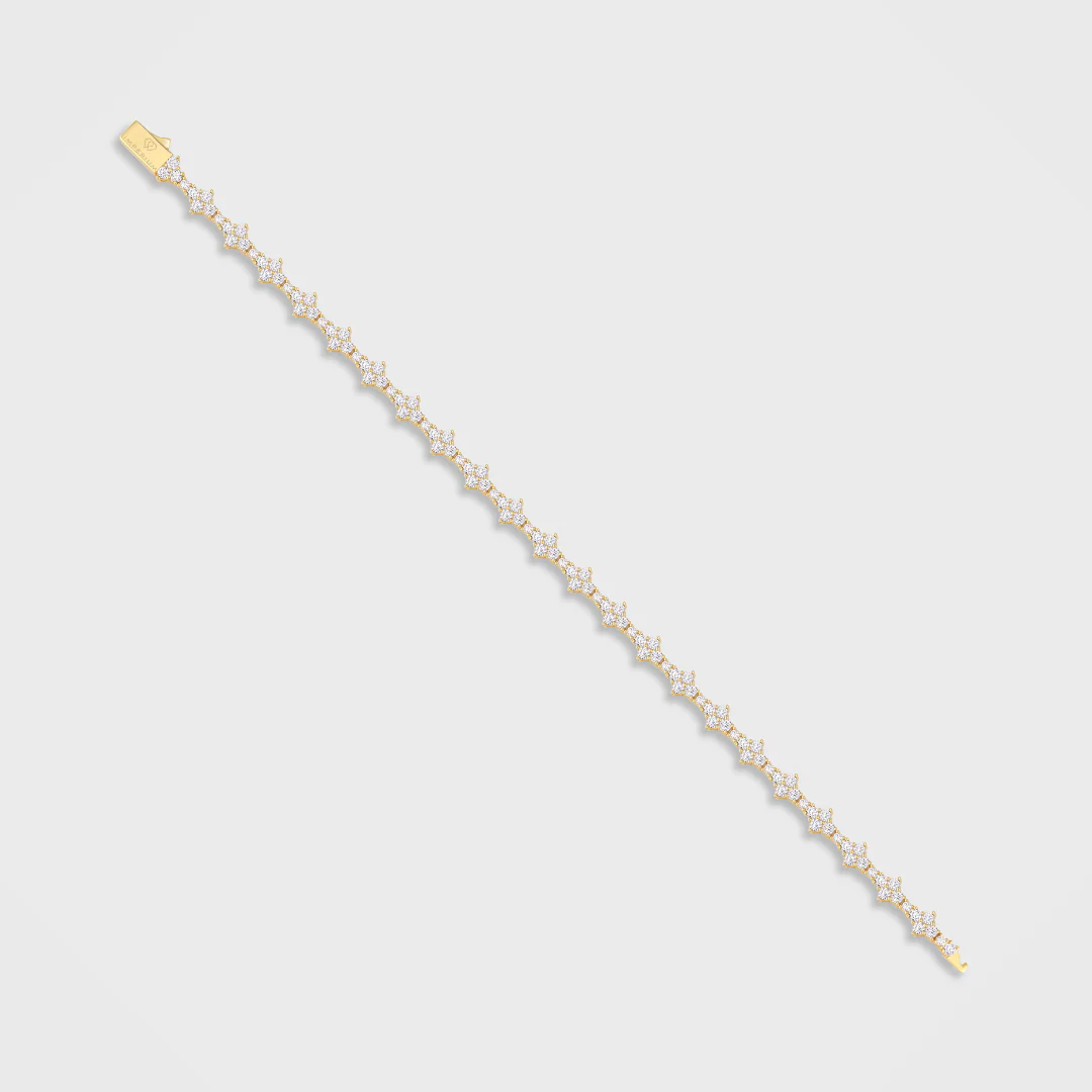 The perfect balance between elegance and luxury, our honeycomb tennis bracelet is designed to be worn for any occasion, and with its brilliant brightness, it's sure to be the centerpiece of any ensemble. Made with real 18K Gold.