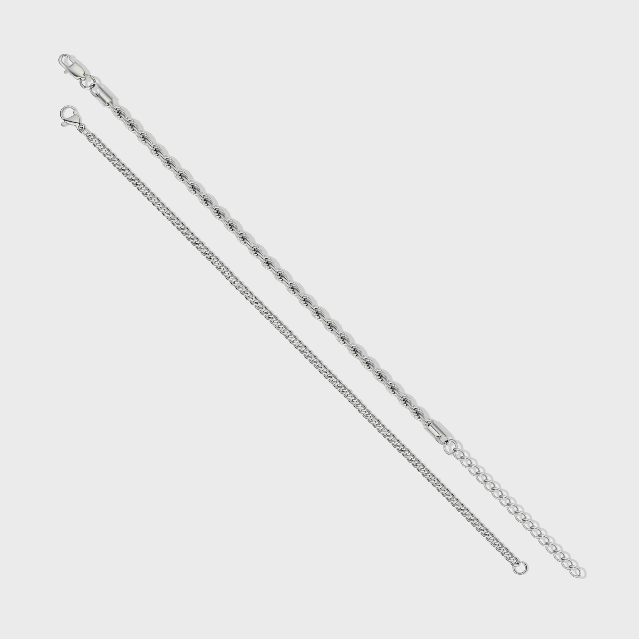 -70%Micro Cuban + Rope Bracelet Stack (Silver)—