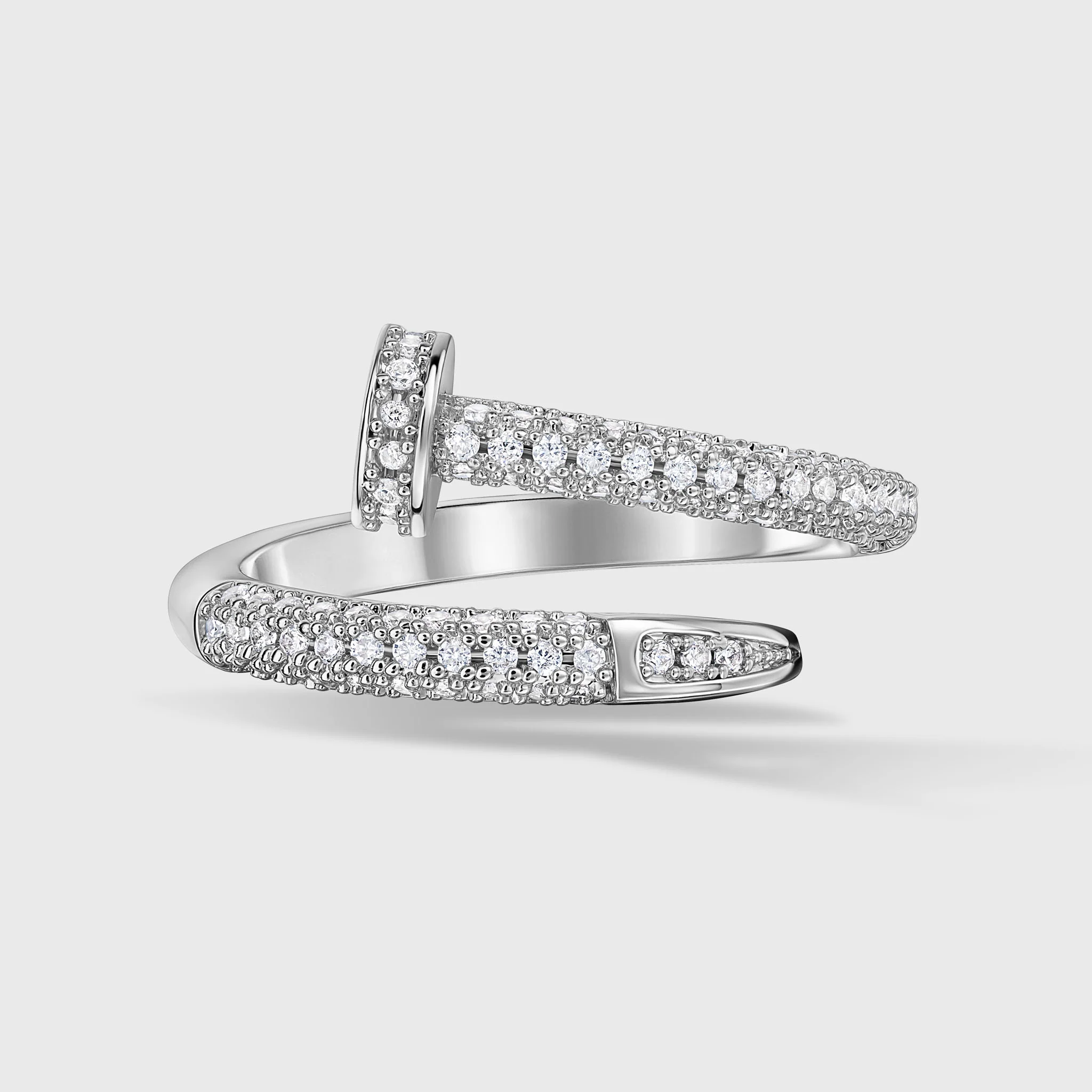 Introducing our captivating Silver Nail Ring, a true embodiment of edgy elegance and artistic flair. This unique ring features a nail-inspired design, meticulously crafted to perfection. The sleek and streamlined silhouette is enhanced with dazzling CZ diamonds, meticulously set to add a touch of brilliance and allure. Silver color bonded with Rhodium ensures a luxurious and long-lasting finish that radiates sophistication.