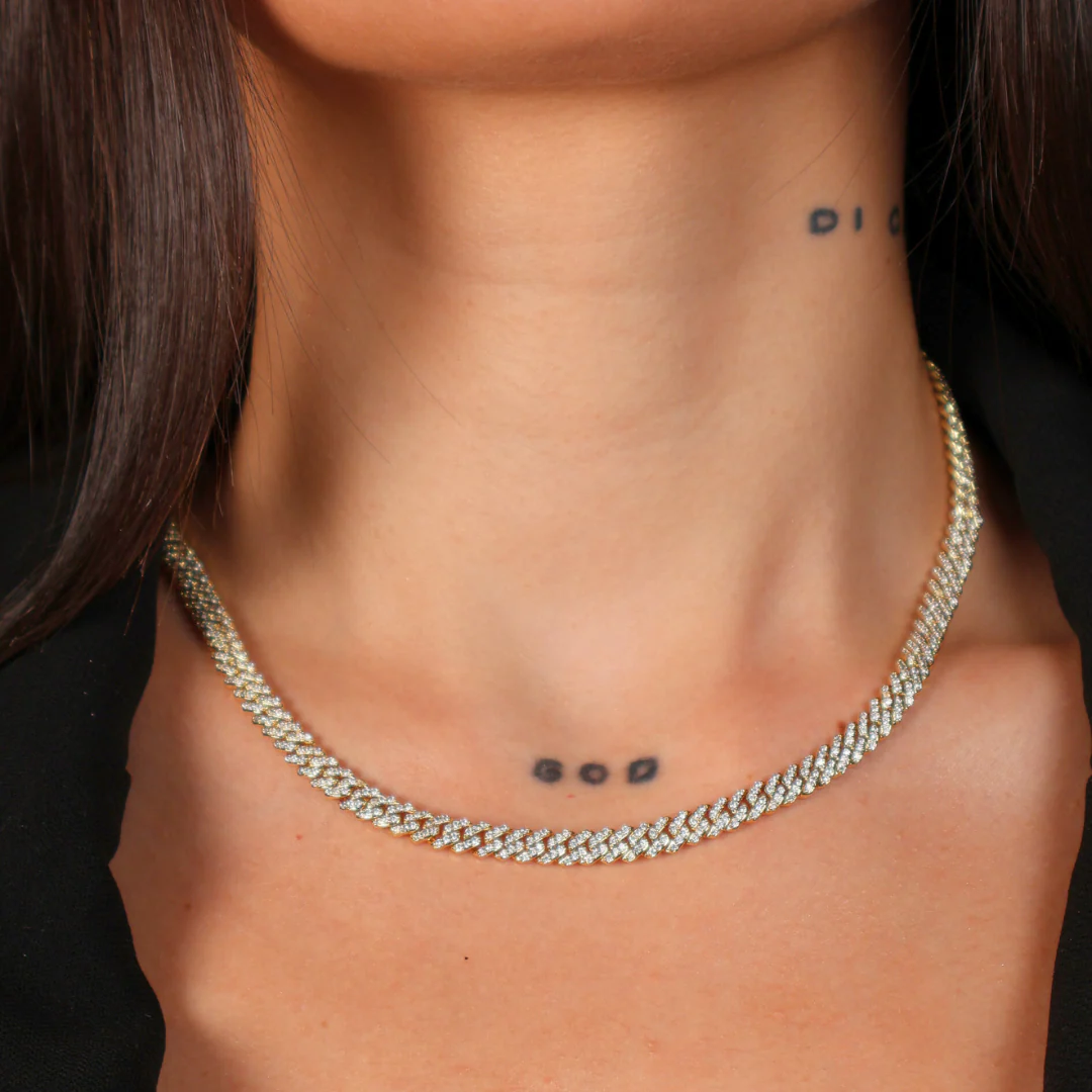 Introducing our stunning Micro Iced Prong Cuban chain and bracelet set - a true statement piece for any occasion. Made from the highest quality materials, this set features our signature 5mm Cuban link design, embellished with dazzling CZ Diamonds that reflect light from every angle. The iced Cuban chain and bracelet have been crafted with precision, ensuring a perfect fit and ultimate comfort. Wear them together for an undeniably bold look, or mix and match with other pieces in your collection. Upgrade your jewelry game with this exquisite set that will add a touch of luxury to any outfit. Made with Real 18K Gold bonded.